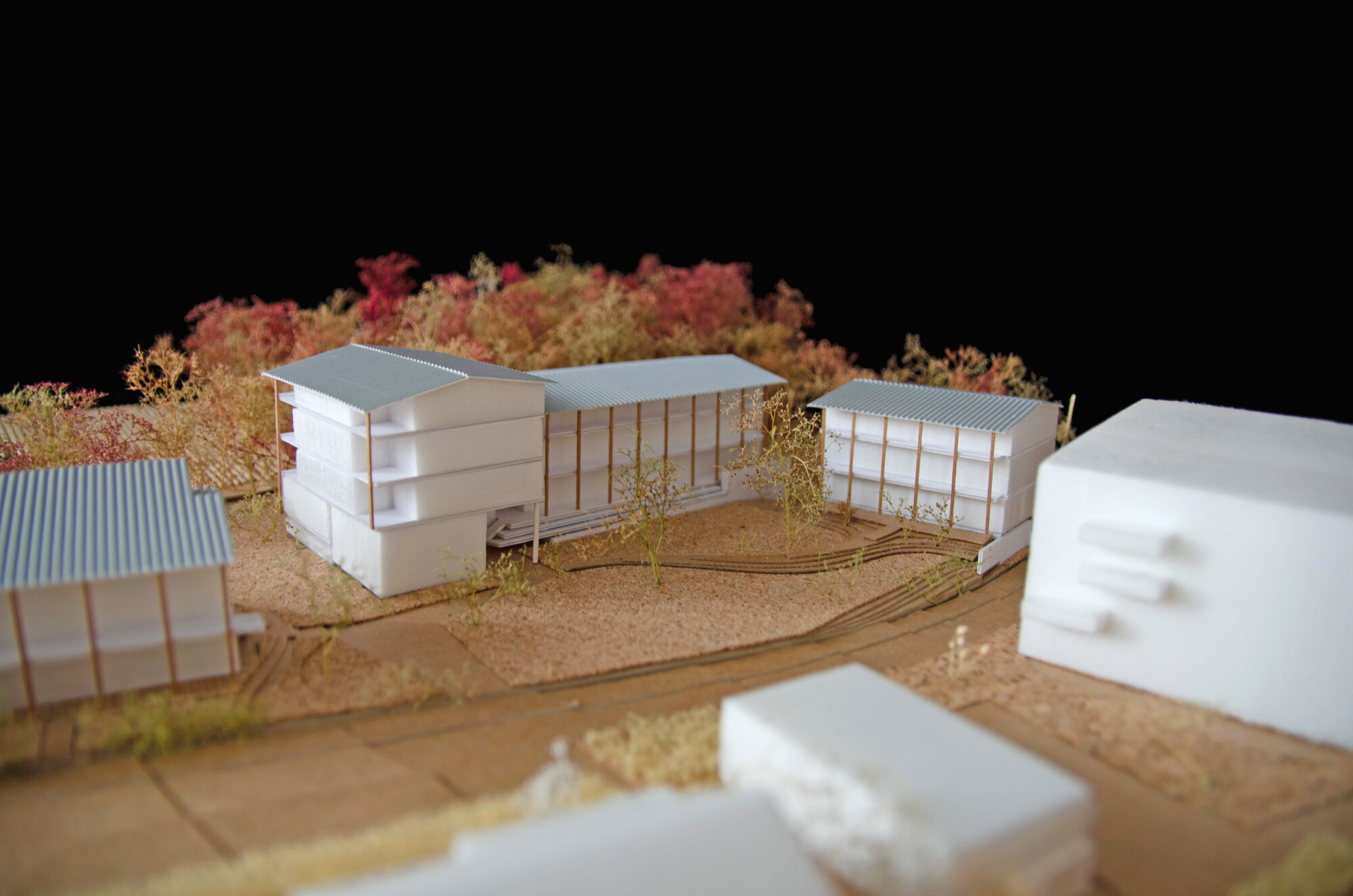 Situé en lisière des bois et des champs, le projet vient conclure l’extension de Beaucouzé. Le site se caractérise par la présence de typologies pavillonnaire et de petits logements collectifs ; les constructions existantes, égrenées le long des ruelles et passages sinueux, confèrent à l’ensemble une image de hameau pittoresque.