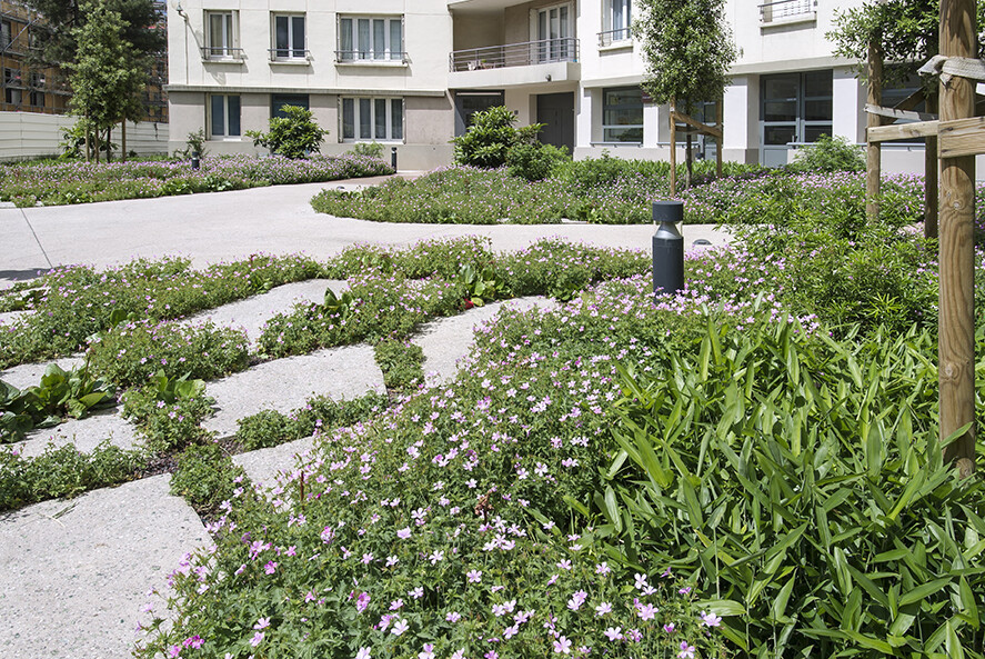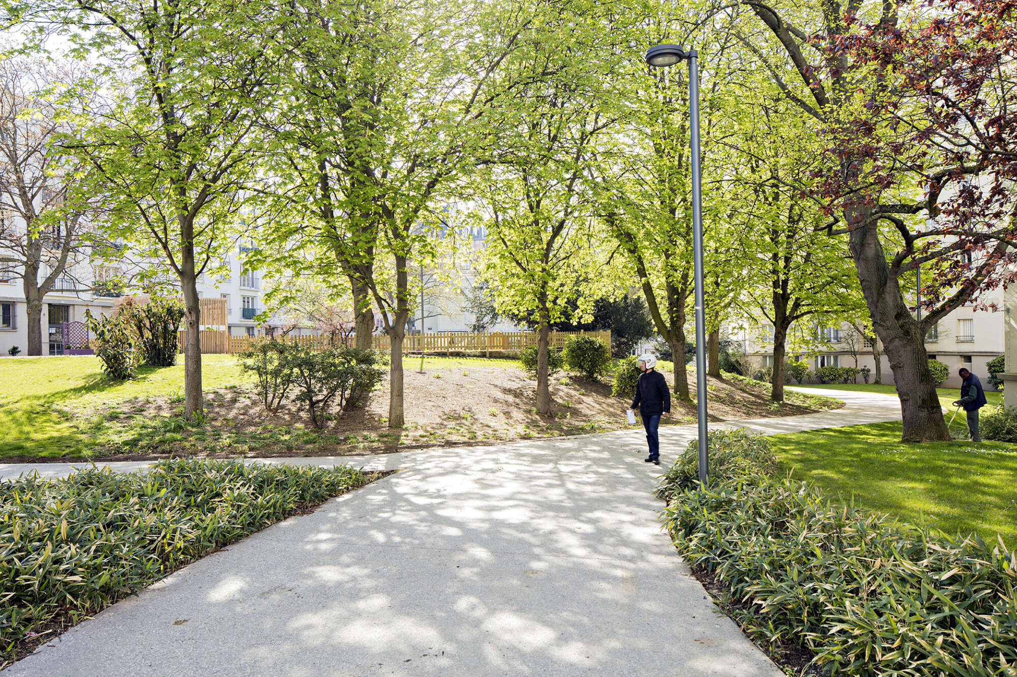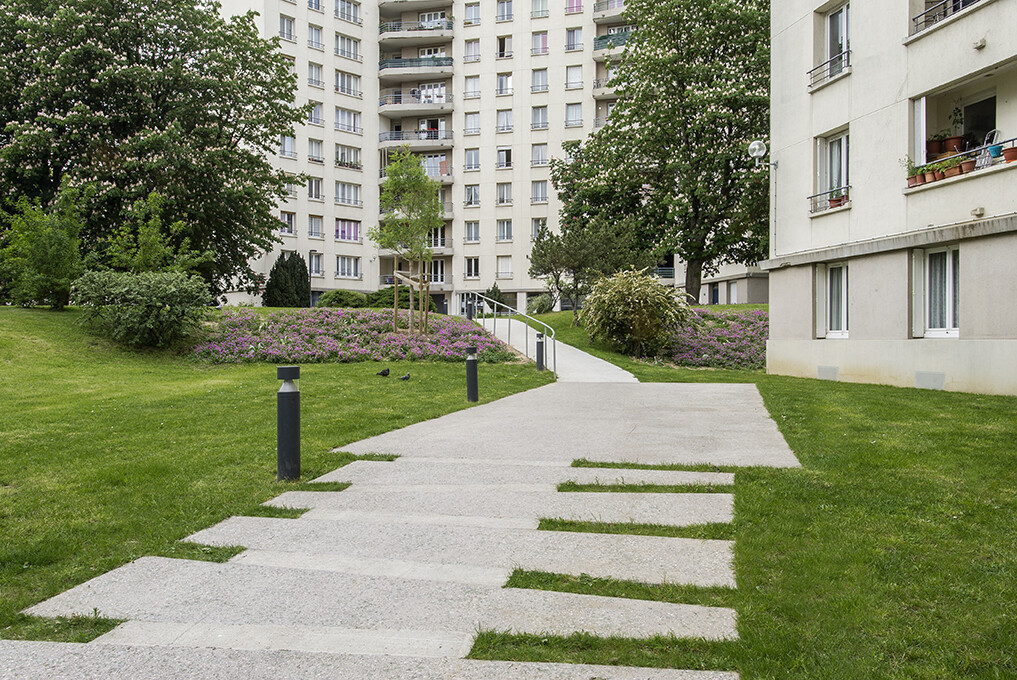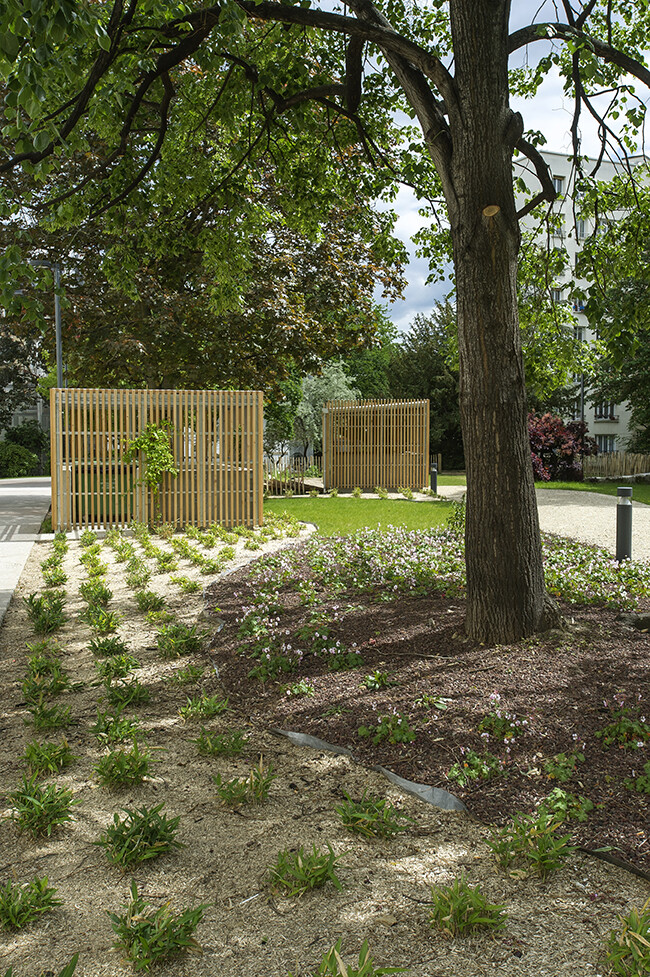 Le développement de nouveaux logements dans la partie nord du site implique une requalification et une mise au norme des espaces extérieurs et communs existants. Grâce à la diversification de la richesse de sa flore, le square Contenot-Decaen devient un lieu fédérateur capable de faire dialoguer les différentes générations et cultures d’habitants de la résidence.