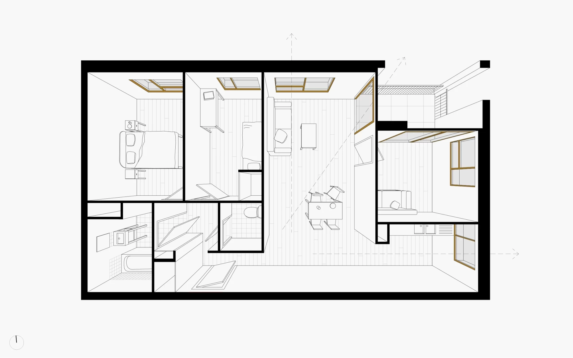 La plus grande attention a été apportée aux orientations solaires des logements. Chaque palier en dessert trois maximum, permettant à tous les appartement, à partir du T2, de bénéficier d’une multiorientation. Ces derniers disposent de larges baies afin d’optimiser les apports lumineux.