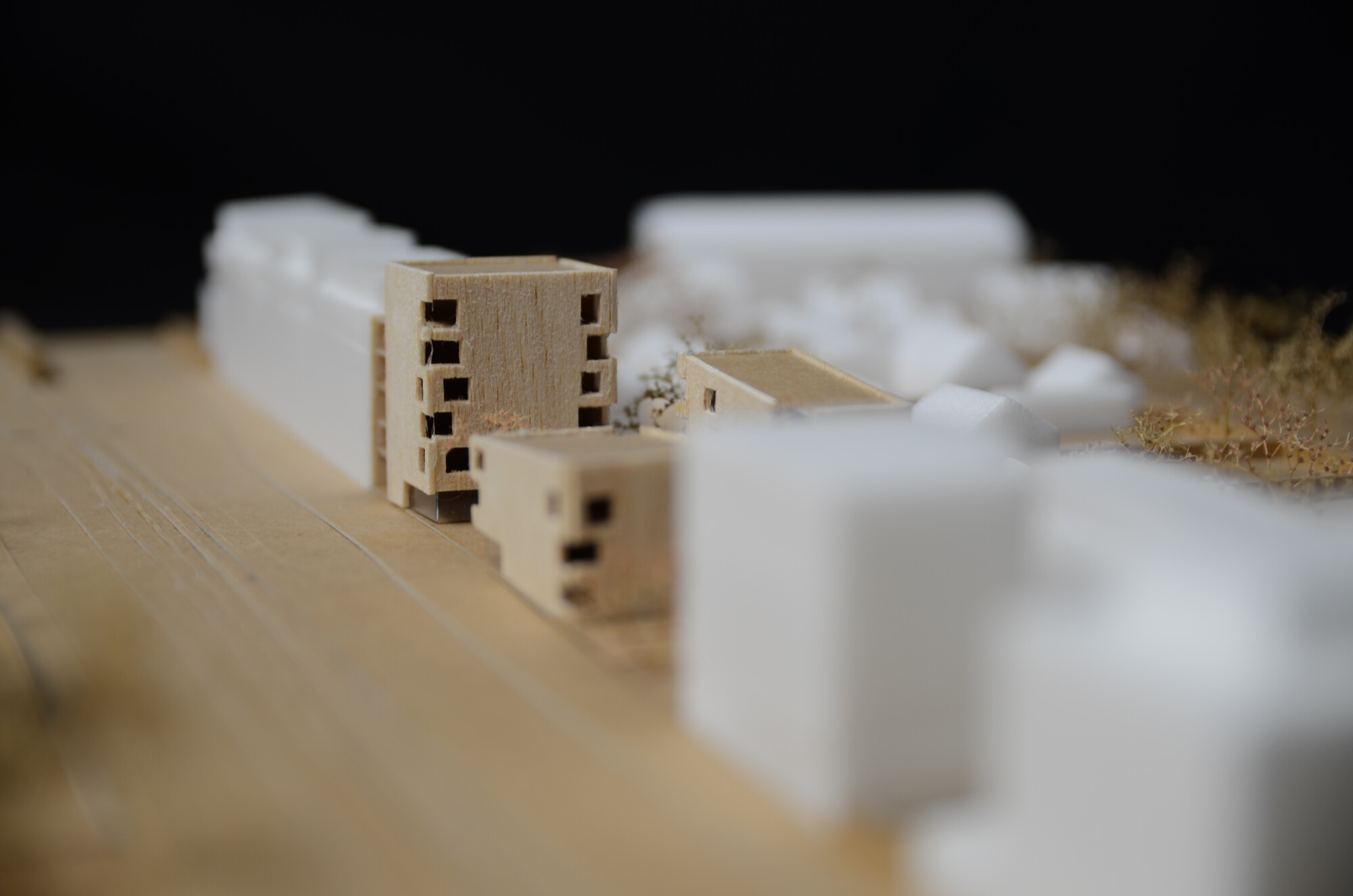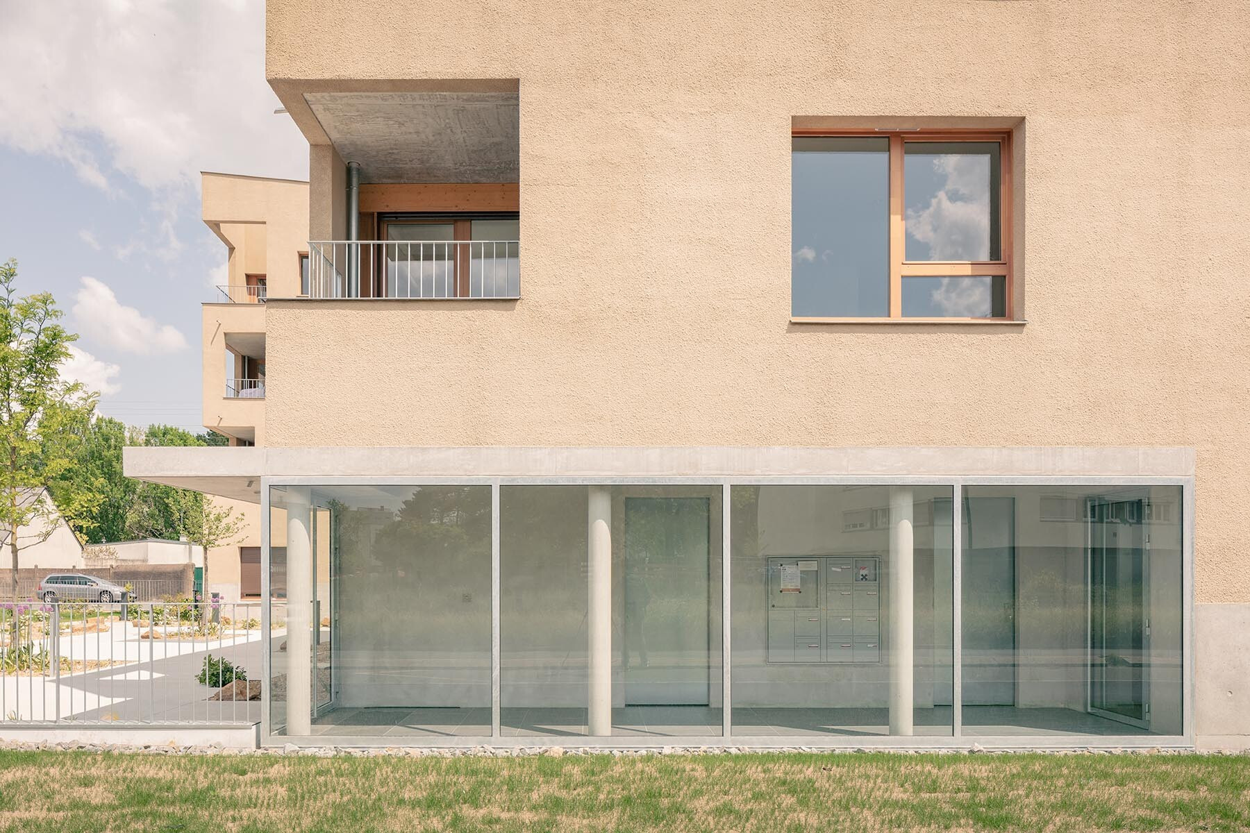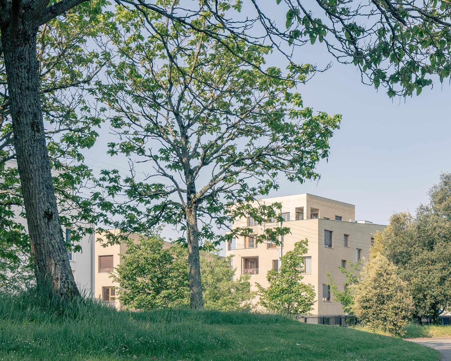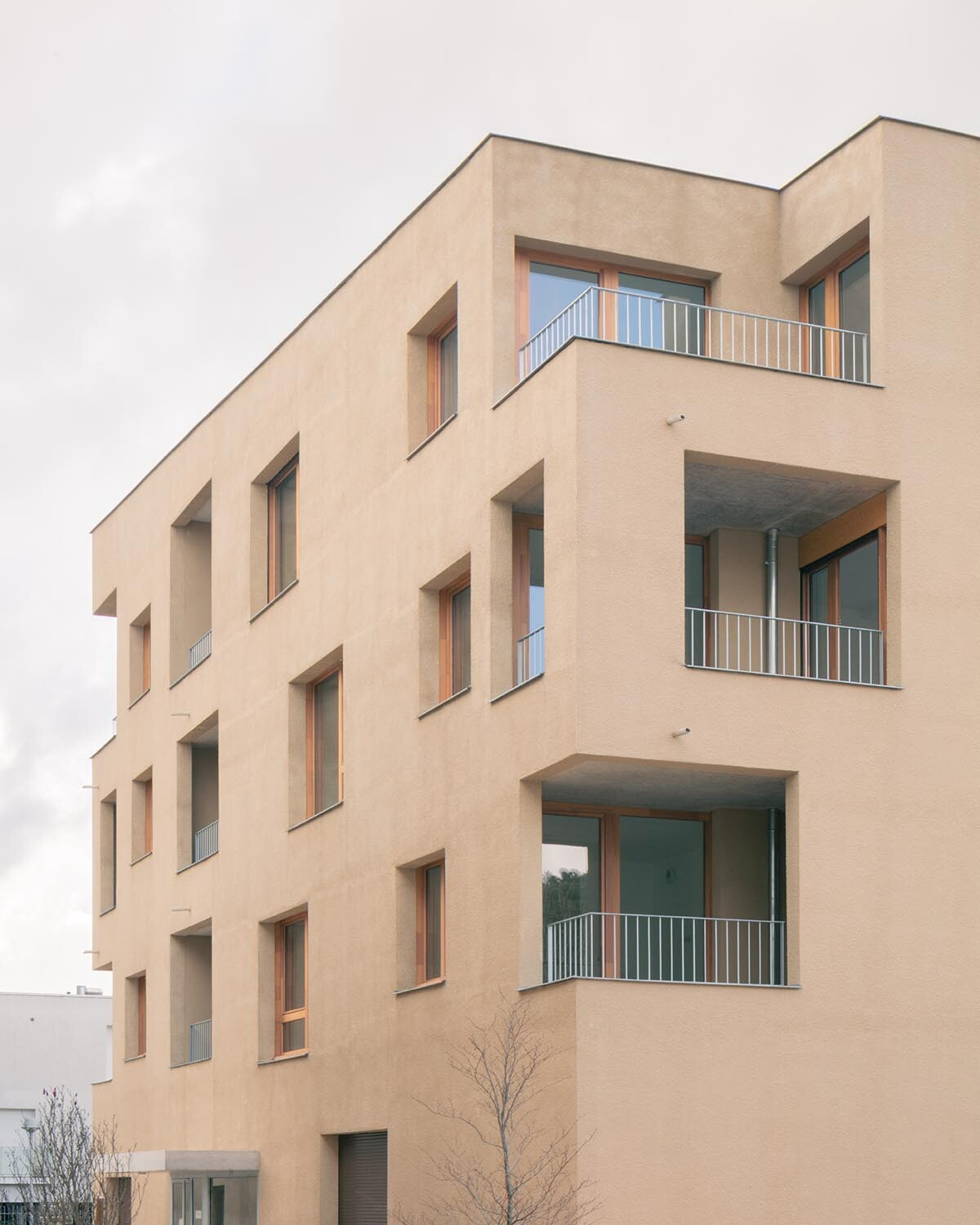 Le projet est composé de trois bâtiments monolithiques avec des volumétries simples et compactes qui s’articulent autour d’une place centrale et de manière à offrir une profondeur de champ et ainsi animer le boulevard. Les entrées des immeubles donnant sur le parvis de cœur d’îlot sont soulignées par des casquettes en béton. Des galeries éclairées naturellement regroupent les éléments de services tels que les accès aux locaux et les boîtes aux lettres. Elles sont traitées comme le prolongement de l’espace extérieur et créent un lien entre la place centrale et les halls menant aux logements.